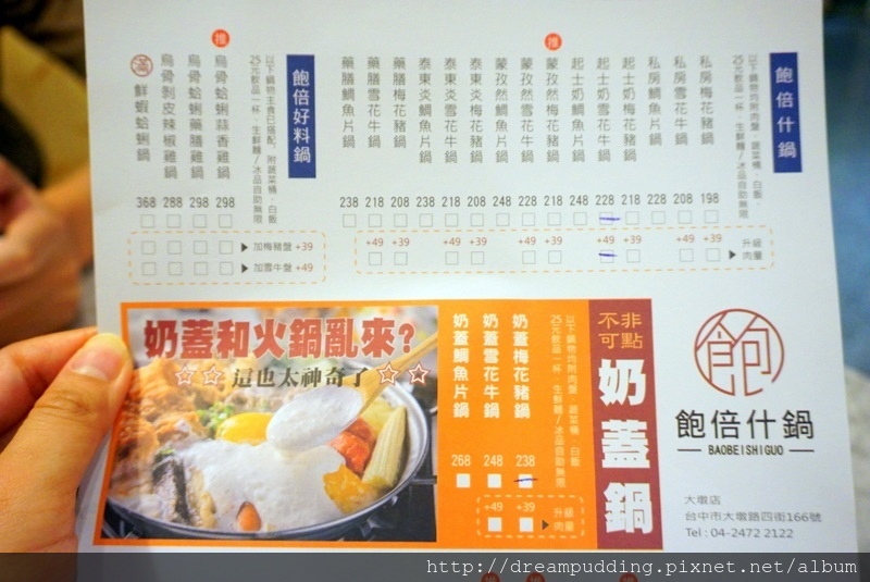 [台中]飽倍什鍋.大墩店,奶蓋鍋鹹香濃郁,料很多,內用鍋物冰淇淋跟生鮮麵無限續,加價的檸檬塔很不錯。