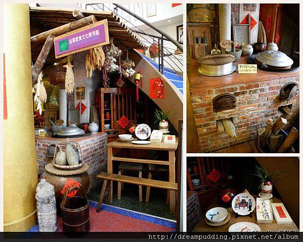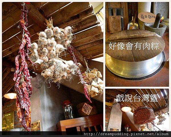 一樓的小角落還有個阿嬤灶房,很古色古香,還懸掛了風乾的辣椒及戲說台灣常出現的菜籃。