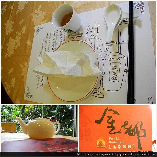 金都餐廳創立於1994年,以經營鄉土地方特色美食及推廣埔里產業觀光為宗旨,不斷結合地方鄉土農特產,持續研發新健康美食與主題饗宴!所以在金都餐廳所吃到的都是台灣味的台灣情料理。門口處還擺了個金都公仔立牌。