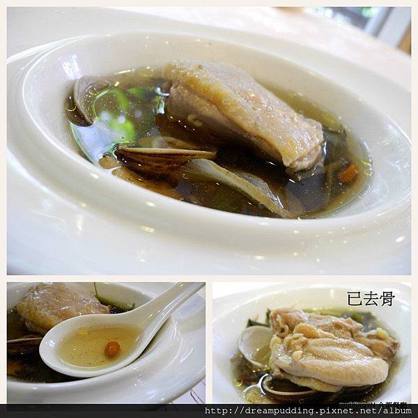 山當歸土雞,看起來雖然有點油,但喝起來像是清爽的雞湯,雞胸肉很大塊,口感細柔帶汁,且已經去好骨頭。