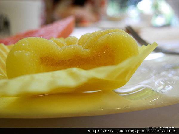 這個百香果餅我超喜愛的,吃起來像有點硬的百香口味麻糬,Q軟軟的,味道芳香,當下吃完走出餐廳發現旁邊有在販售辦手禮,立馬就買了一盒回家。
