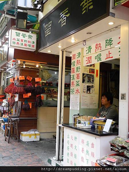 有賣羅漢果茶跟野葛菜水,這是香港獨特賣的涼茶,街上很多人在賣在喝。在香港的這幾天一直走,很累,睡都睡不飽,所以我們就點了碗野葛菜水來降降火。