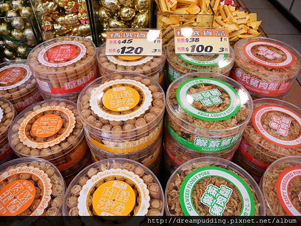 這個肉鬆蛋捲很好吃,3盒港幣120元,換算一盒不到台幣200元。聽說陳皮梅跟鴨胗也很好吃,但都是大包裝所以我們也沒買。