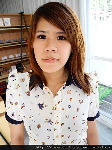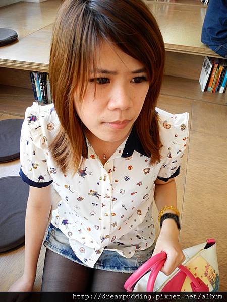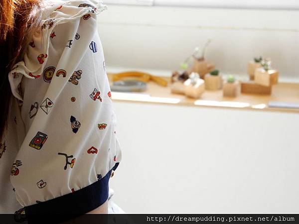 簡單的襯衫因為有許多可愛的小圖案讓衣服感覺青春活潑,但襯衫版型又讓人帶點氣質。