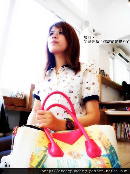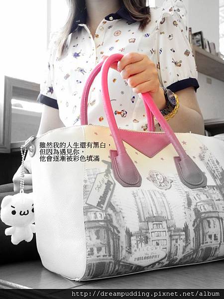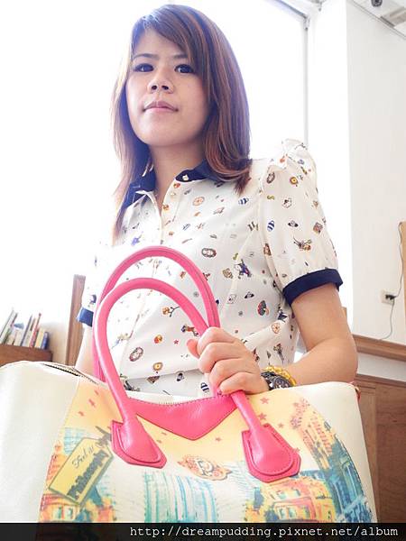 包包很重要的就是提把,此款包包提把夠寬且帶點軟,提起來好提,保護您的纖纖玉手,手繪風街景塗鴉讓您把全世界帶著走。