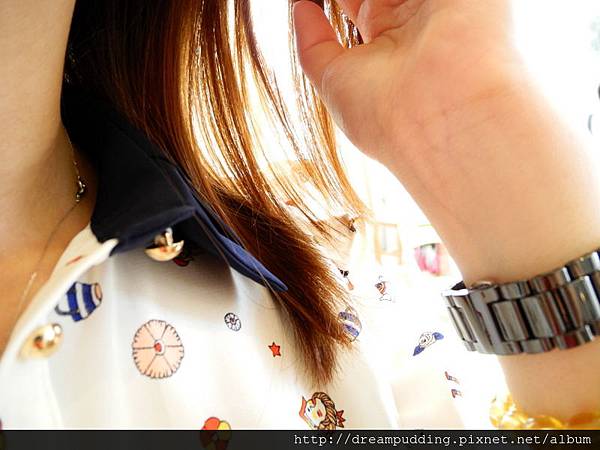 這件衣服在陽光下拍起來效果挺好,所以一直請小美定格在光線下讓我拍照,真是辛苦她了。