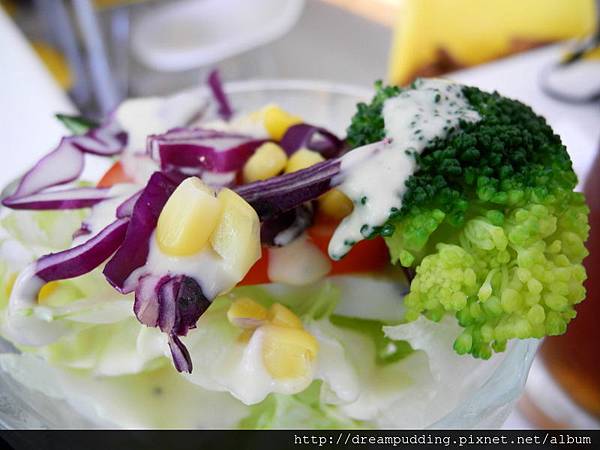 心家坡採點餐即結帳的消費方式,我們家小甜在結帳時被看到冰櫃裡的沙拉就立馬被誘惑了,馬上加點,看她吃的津津有味,應該是不錯吃吧,那沙拉醬應該不會很甜,因為我家小甜人長的甜是沒錯,但不喜歡吃甜。