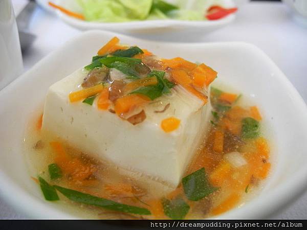配菜不是簡單的涼拌豆腐淋醬油,而是有勾芡醬汁的嫩豆腐。