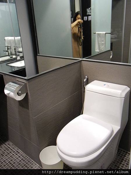 左方的透明門隔起的小空間就是淋浴室,乾溼分離的方便是,一人在裡面沖澡時,另一人可以在外面卸妝或是便便,不過我想除了夫妻之外,應該不會有另一半在你在洗澡時在旁便便吧?這樣形象都沒了。