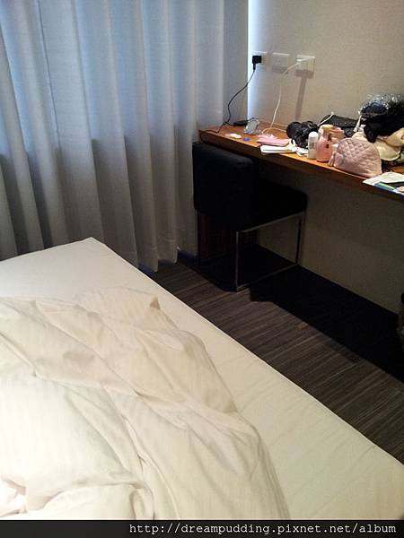 床前方還有一個小長桌跟電視,剛好可以擺我們的瓶瓶罐罐。