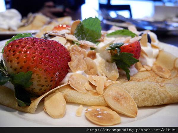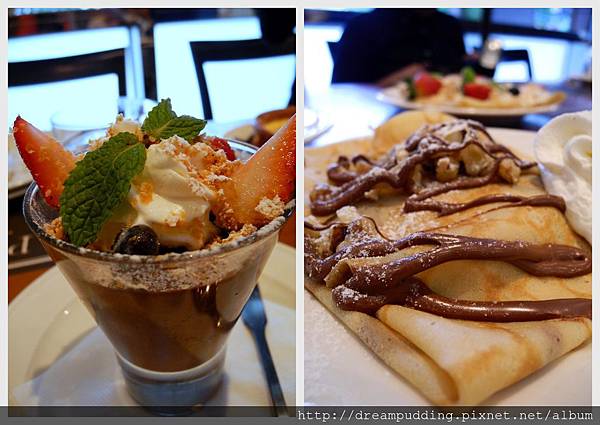 右方的是香蕉臻果巧克力可麗餅,口感也很豐富濃厚,不過因為我愛甜,這道看起來不夠甜,我就只吃了一口,把胃留給下一道甜的。話說他們家的鮮奶油因為是手工打發而成,所以吃起來滑順輕盈不膩口說。