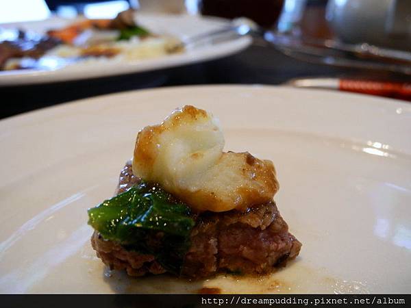 牛肉挺嫩的,不須費太多力氣咀嚼,適合牙齒漸漸邁向老年的我,搭配底下的波菜葉還有馬鈴薯泥一塊吃,口感會很豐富。