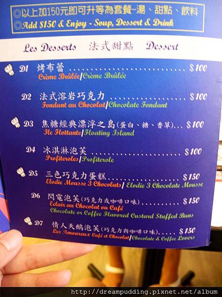 升等套餐可選100元甜點,也可補差額選其他價位的甜點。