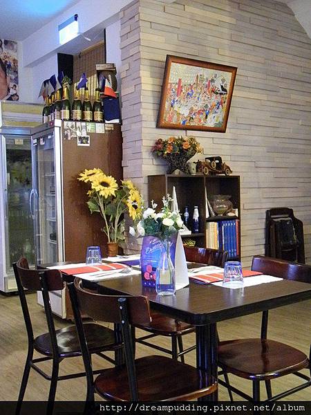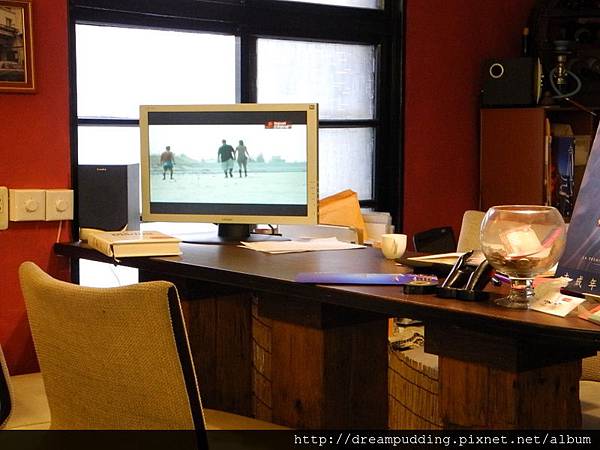 吧檯桌有台小液晶,很適合坐在這喝酒聊天看球賽阿。但我現在很迷韓劇,所以對球賽就興趣缺缺,想當初小時候也迷過灌籃高手,看了一陣子NBA,那陣子很迷籃球員,周俊三跟陳信安,雖然不很懂籃球,但是看到那精湛球技,就會忍不住熱血沸騰。結果現在只對韓劇熱血沸騰.......我真的年紀大了。