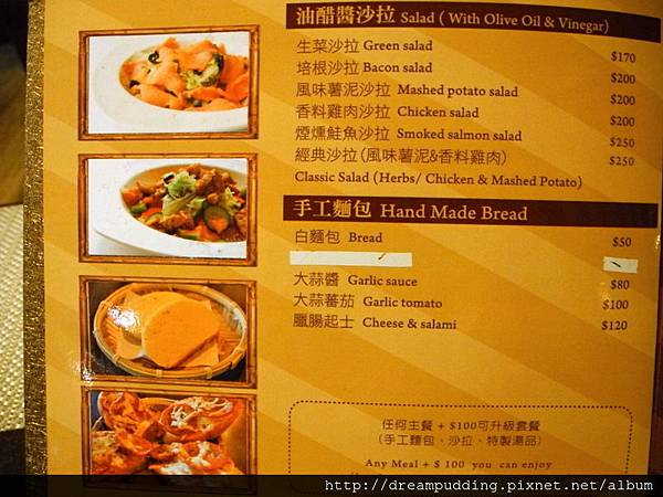 加價升級套餐只多了麵包、沙拉跟湯,飲料需另外單點。我好渴,所以飲料就立馬給他單點了去。