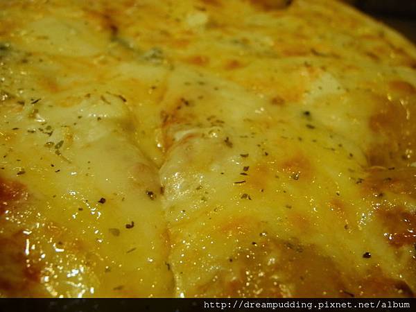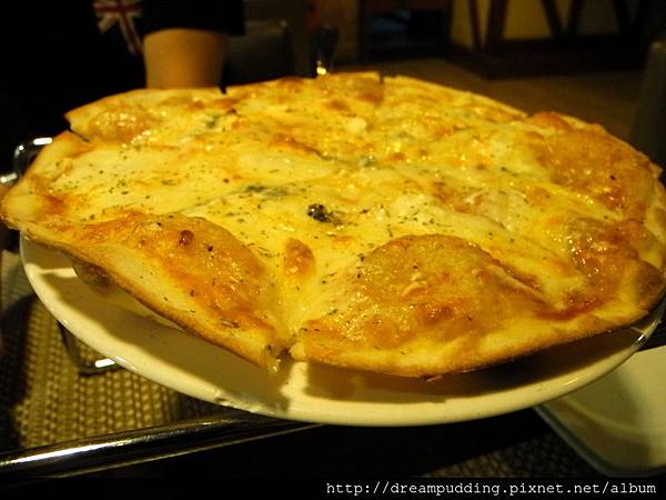 四種起士PIZZA。很大份喔,這一上桌我們就想說應該是吃不完要外帶了。