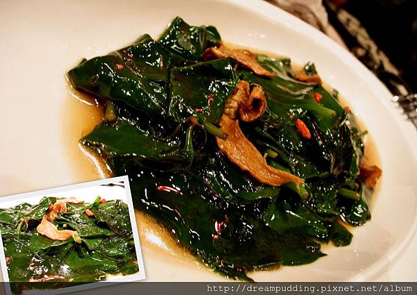 麻油川七,將薑片爆香到乾扁,味道全入,川七葉吃起來滑溜,此道嚐起來就是香盈的滋補味啊。