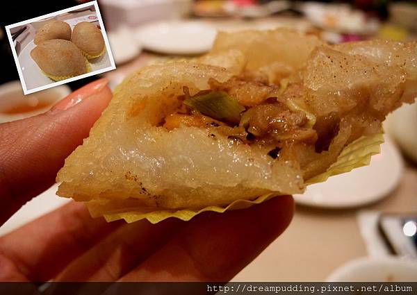 這好特別,吃起來像放大的水晶餃,可是那外皮是略酥的口感,內部皮厚但卻有嚼勁,QQ的,內餡也不會過鹹,這個推。