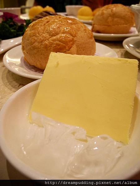 冰火菠蘿油,很貼心的還將奶油放上冰塊,這菠蘿麵包表皮菠蘿微酥,麵包體非常鬆軟,奶油好絲滑,簡直是麵包界裡的德芙啊~
