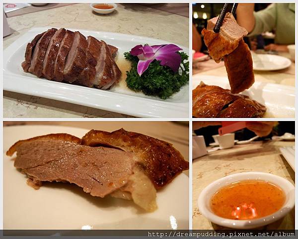 秘製燒鵝,搭配的是冰梅醬,每天現宰的溫體鵝,採用鵝胸部分,吃起來皮脆富有油脂含有肉汁,這必點。