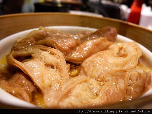 四季肥腸,這肥腸入味軟嫩且無腥味,吃起來帶點Q還有微微的肉汁,剩下的湯汁讓人好想拿來淋飯。
