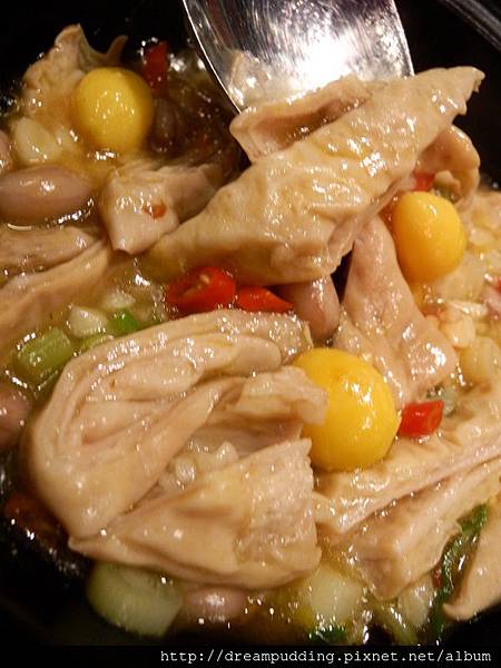 皮蛋三鮮湯,皮蛋煮湯到還奇異的平和好喝,記得之前到台北吃麻辣鍋時,某間店家另一半的鴛鴦鍋也給了我們皮蛋鍋。