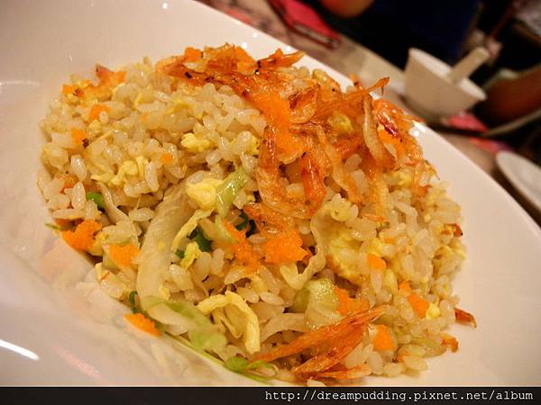 黃金櫻花蝦炒飯,採用真正的櫻花蝦,因此吃起來香氣十足且乾爽,還加了蝦卵增加噗激口感。