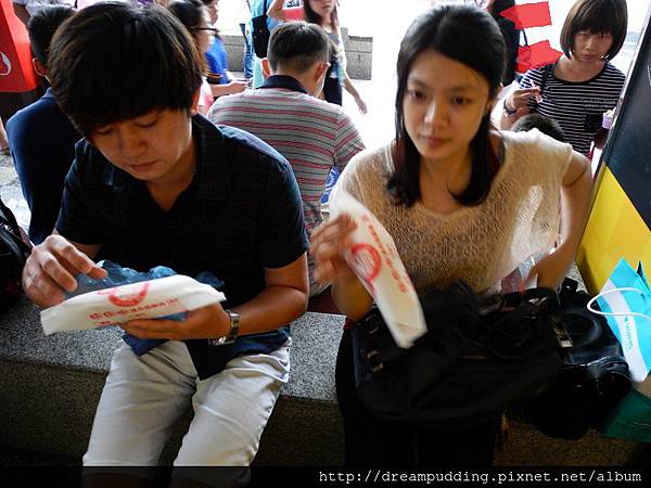 剛好旁邊有個位置,我跟帥氣的拖鞋哥就立馬坐下品嚐,結果後面有個小姐在凝視我?????應該不是忌妒我的美貌,是埋怨我搶了她的位置嗎????千萬千萬不要跟我說是忌妒我旁邊坐了帥氣的拖鞋哥>////<(沒辦法,這次出國跟拖鞋哥借了行李箱,所以在行李箱還他之前,有他的篇幅我都必須很狗腿)