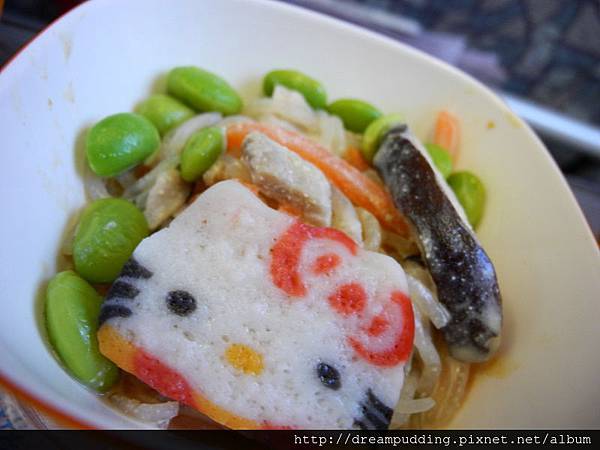 還有kitty貓魚板,豆類不是我不愛的碗豆,是價格比較貴的毛豆說。