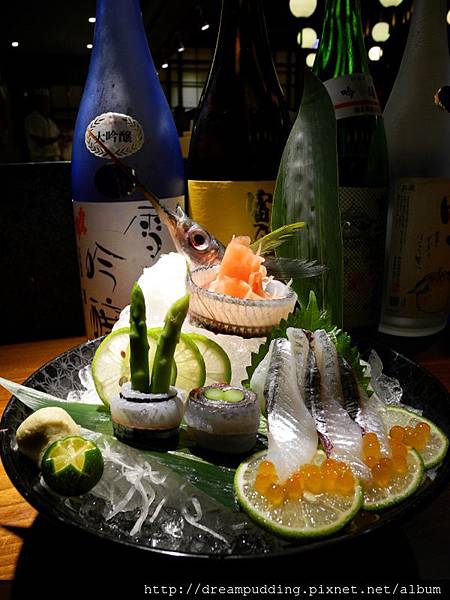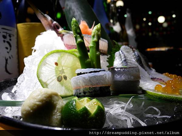 水針吃起來口感清爽無太多油脂,一旁的黃色小圓球是現磨的阿里山出產的芥末,香氣夠但辣度卻較緩,更能顯現出魚肉的細緻。