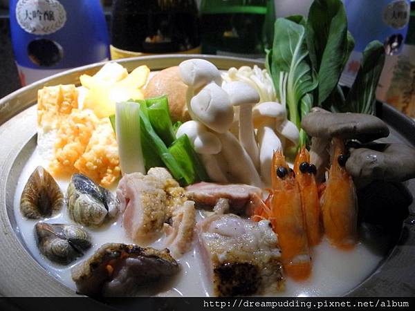 雞肉相撲白湯鍋,特色是裡面加入了烤過的雞肉,白湯不是牛奶喔,是熬煮了數小時的大骨白湯,由於加了海鮮,所以口感濃郁帶鮮甜,這一鍋是中的,但中的就很大鍋了,而且還能免費續湯喔,我們那天大家都喝了好幾碗,最後我還加湯把她打包帶回家。