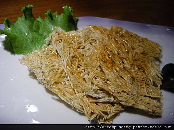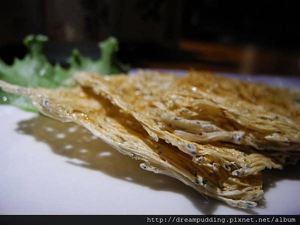 這很少見,吃起來口感像很乾爽的魷魚片,但味道比較清新淡雅,很涮口。