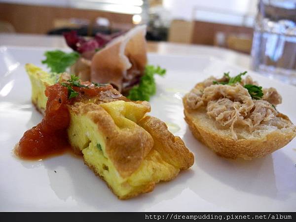 三品前菜,義式烘蛋吃起來挺蓬的,上頭是清爽的莎莎醬。