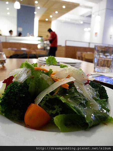 沙拉有新鮮,醬是和風油醋醬來著,不會太酸,上頭還刨了我愛的起士片阿。
