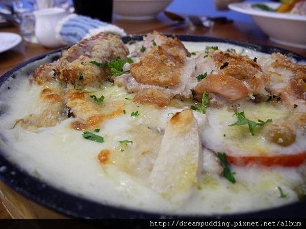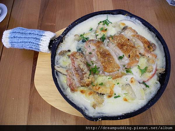 鮮菇烤嫩雞奶油焗烤飯。