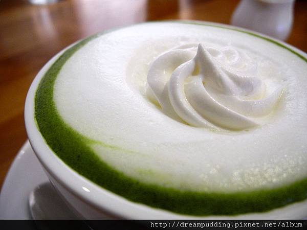 抹茶拿鐵,使用的是靜岡抹茶,奶泡很濃郁,吃起來很幸福,讓我好想演牛奶鬍子布,抹茶喝起來不苦,挺順的,不過喝到一半的時候發現有細微的抹茶粉在抹茶裡漂浮,似乎是抹茶粉調皮,不想跟水完全融合,所以喝起來讓喉嚨有點癢癢的,但是又好好喝,所以我還是把她喝到剩下一點點。