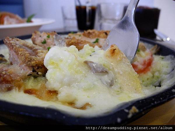 話說這飯奶味十分濃郁,喜愛奶油的你千萬不要錯過,雞腿的話,表皮有酥,內部還保有些微微汁液跟嫩度,這道我也好愛。