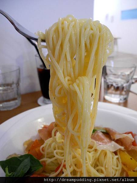 天使麵只要處理不好,立馬就變麵線,Copain二店的師傅厲害,沒把他變成麵線,因為我吃了幾家有賣天使麵的,除了已經歇業的罌粟之外,其他幾間都把天使麵變麵線來著,所以吃到一間沒變身麵線的我有點驚訝,不過Copain二店的天使麵還是算軟,心中第一名的天使麵還是罌粟阿,唉~