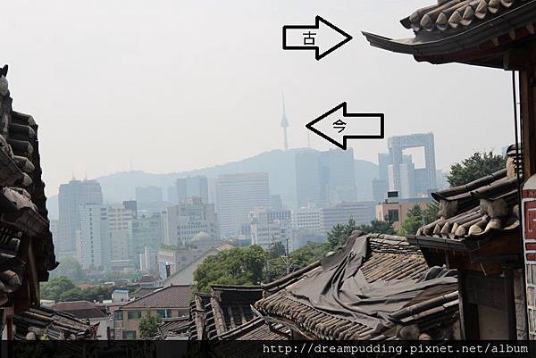 在這條街道放眼望過去能看到現代的首爾塔跟歷史的建築,古今並存,讓人有種感嘆時光的意境。