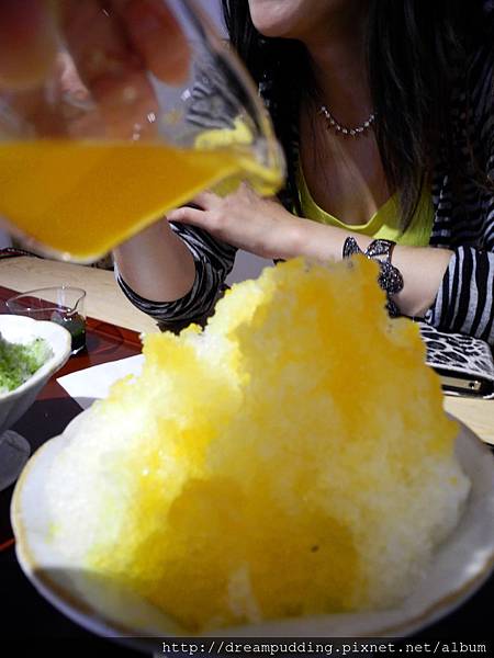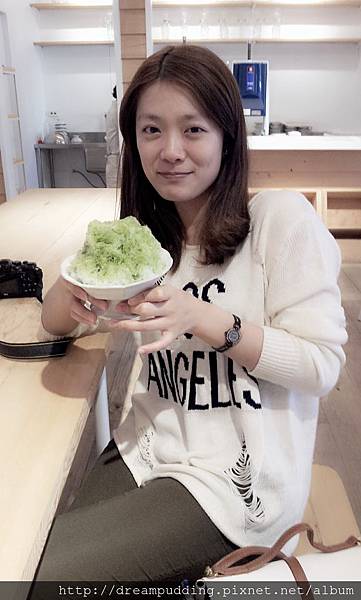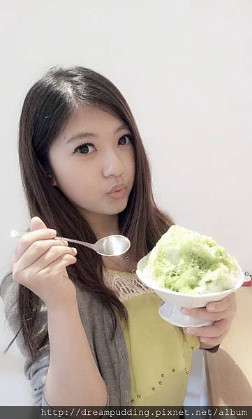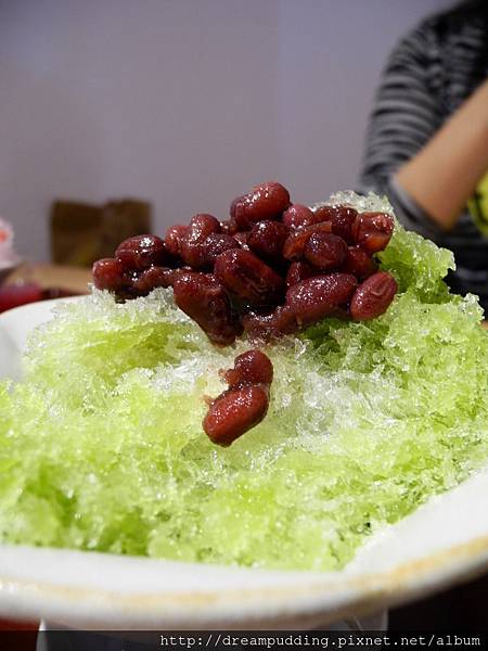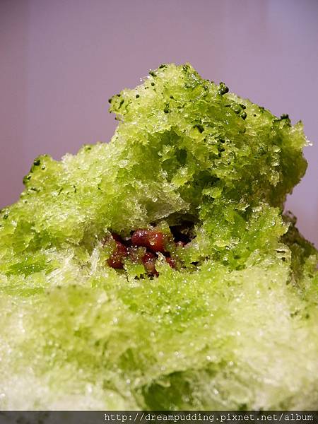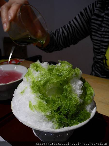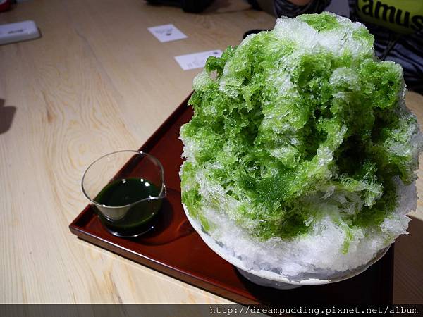 宇治金時。上桌後很大一朵,有像花椰菜,旁邊還有一小盅抹茶醬汁。抹茶漿是使用一保堂的茶道用抹茶粉直接打出,所以嘗起來口感濃厚卻不過份甜膩且順口。