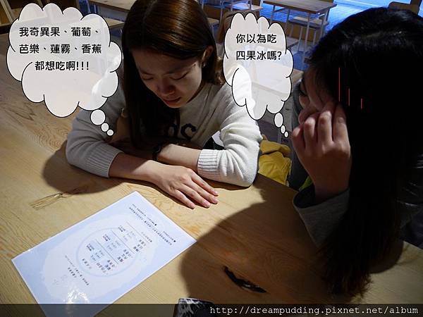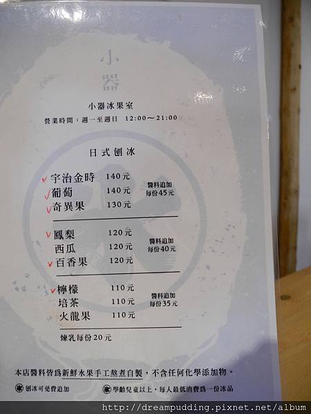 由於小器冰果室有低消限制,所以我們只好一人點一份冰,不然本來是想要你儂我儂一起共吃兩份冰啦,因為續清冰免費阿,結果我們聰明,店家更聰明。