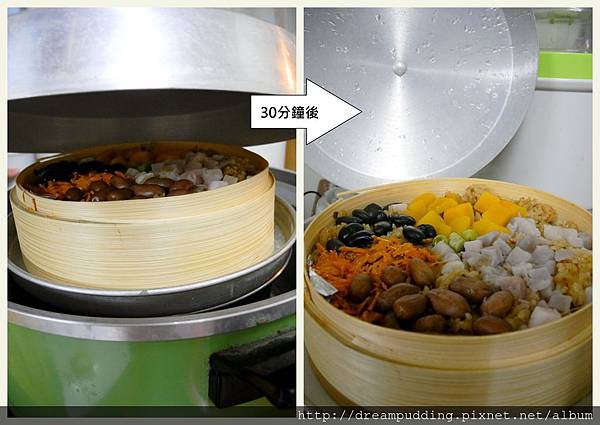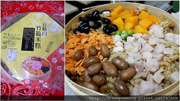 這道竹籠米糕很方便,附上了竹籠,將其放進電鍋裡炊,沒多少時間就完成一道香噴噴料理。