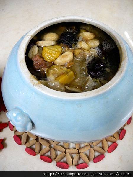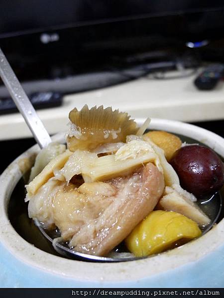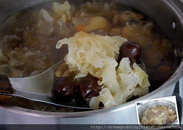 這個桂圓銀耳湯有嚇到我們大家,料超多的,整鍋滿滿的都是料,很實在的一大鍋。喝起來不會太甜,像是外面一般飲料店的三分之一糖到半糖,所以布丁媽很喜歡。