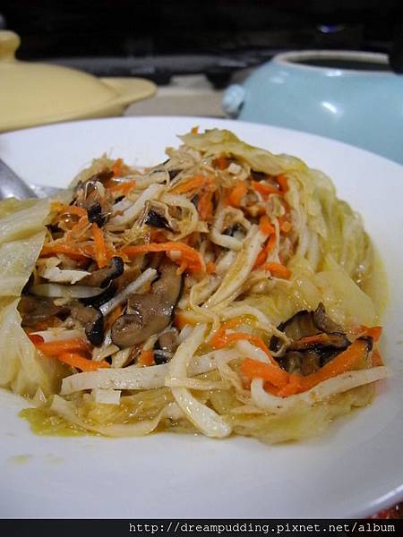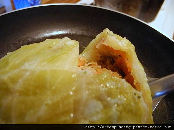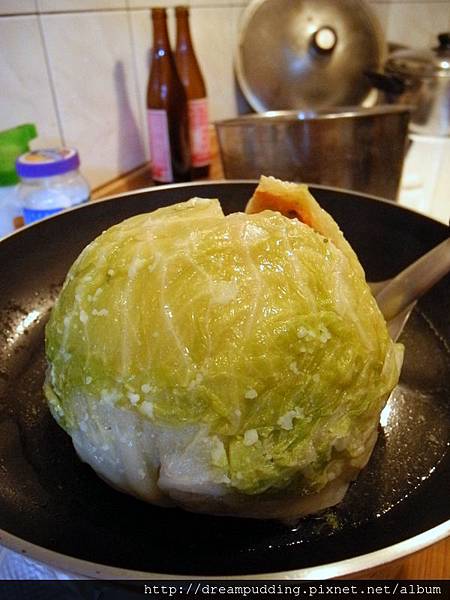 包裝拿出來是一整顆的高麗菜,裡面塞了滿滿的素鮑魚、素魚翅跟香菇絲及筍絲,是素菜首選。