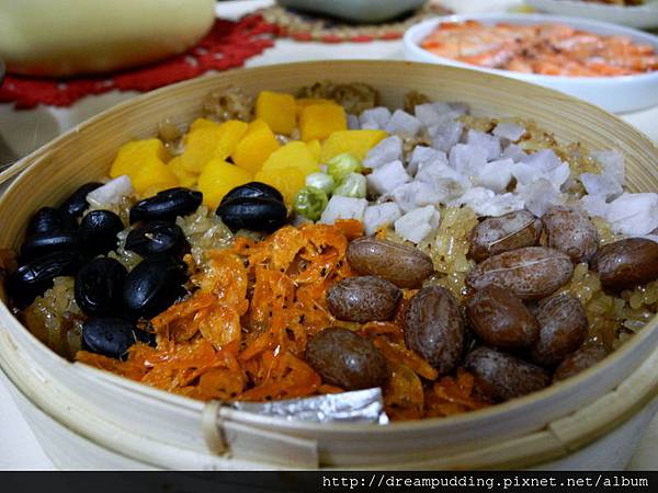 米糕配料豐富,有花生、芋頭、南瓜、黑豆跟蝦皮,吃起來鬆軟黏且香,又不感油膩,是裡面我好喜歡的一道。