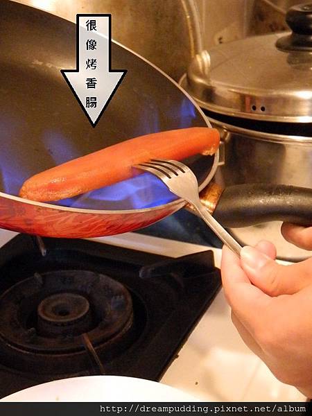文智太太還幫大家加菜,烤了烏魚子,用高粱酒點火下去烤喔,話說我怎麼覺得看起來很像烤香腸,有像吧!對啊。