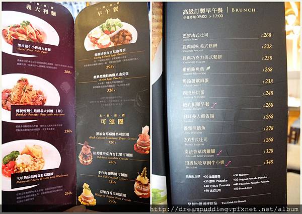 餐點種類蠻多的,有早午餐、甜點跟義大利麵還有燉飯,單點價位大約200~300多左右。因為官網上有詳細的菜單,所以我就沒多拍照片。