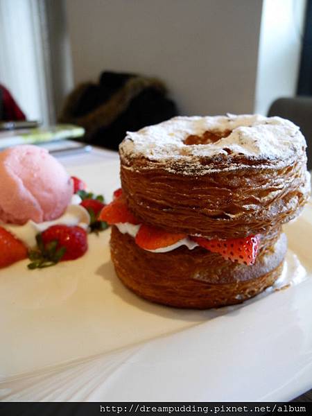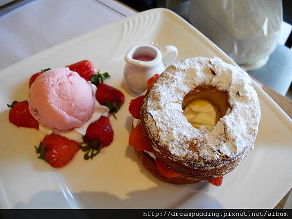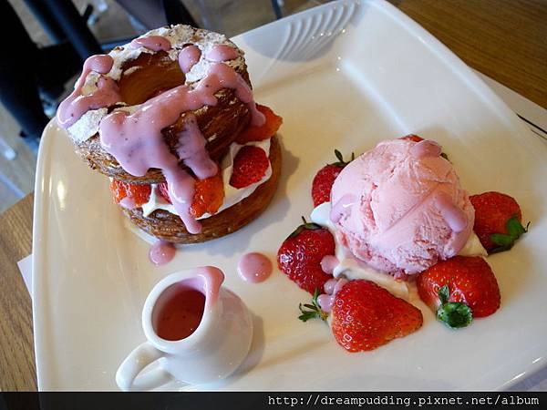 可頌圈裡面夾的是新鮮草莓跟鮮奶油還有卡士達醬。