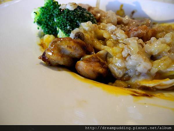 跟野菇口味的燉飯還有巴薩醋混在一起,那口味真的非常棒,雖然飯粒偏軟,快到稀飯,可是那蛋液的溫潤包裹,滋味很美好阿,推~