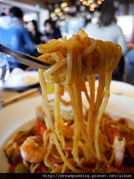 中辣,麵條微軟但還保有彈性,麵條很有味道,醬汁的精髓全進去了,辣卻爽口,裡面的料有鮮蝦跟德式腸,德式腸也很Q彈。